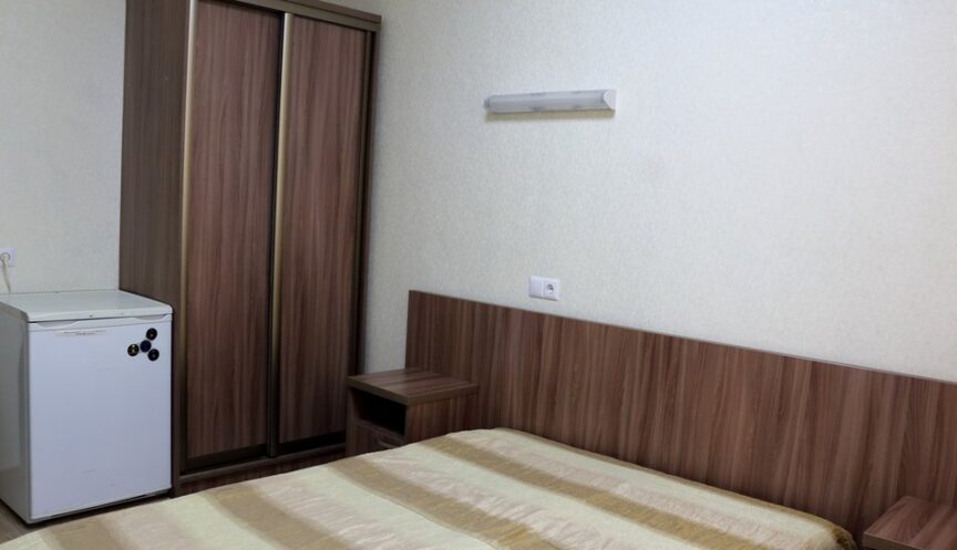 Однокомнатный стандартный номер с дополнительным местом (раскладушка). В номере есть двуспальная кровать, прикроватные тумбочки, стулья и шкаф-купе. Из оборудования — мини-холодильник и ЖК-телевизор. Санузел с душем.