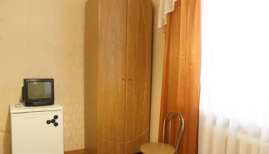 В номере имеется необходимая мебель: 2-спальня кровать (от 140 см до 160 см), стол, стул, шкаф и зеркало. Среди оборудования — телевизор и холодильник. Санузел оснащён душем.