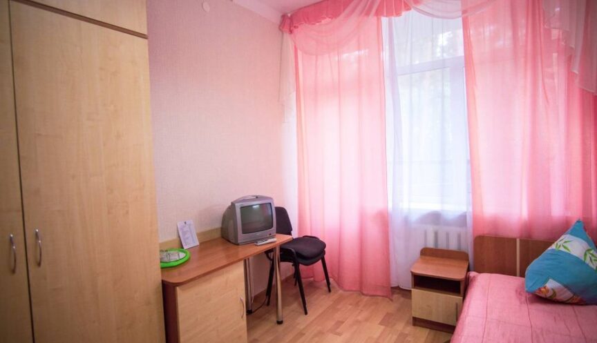 Стандартный однокомнатный номер с дополнительным местом (раскладушка). В номере есть мебель: односпальные кровати, прикроватные тумбочки, стол, стулья и шкаф. Также в номере есть телевизор и холодильник. Санузел с душем.