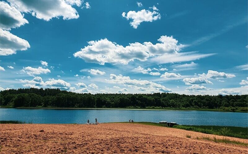 Песчаный пляж находится на первой линии озера Шевино.